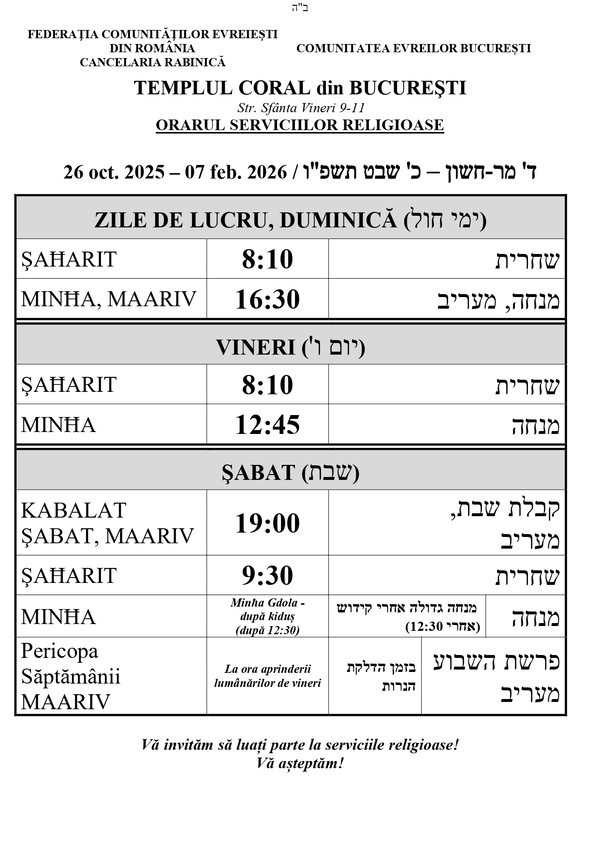 FEDERAŢIA COMUNITĂŢILOR EVREIEŞTI DIN ROMÂNIA, Str. Sf. Vineri nr. 9-11 sector 3, Bucuresti,